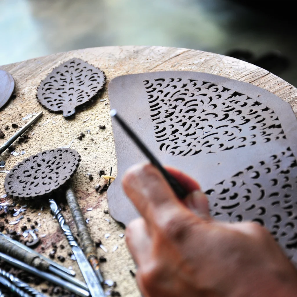 WayBag adalah tas dan produk aksesoris kontemporer yang menggunakan teknik ukir wayang kulit secara manual, dikerjakan langsung oleh pengerajin wayang, tanpa mesin cetak, tanpa produksi massal.